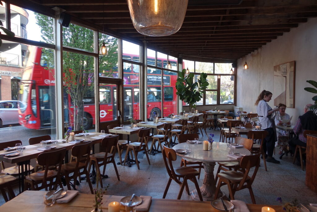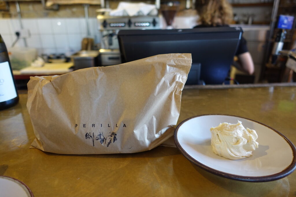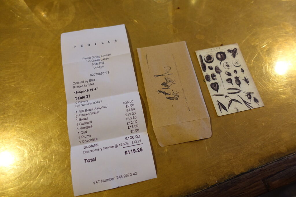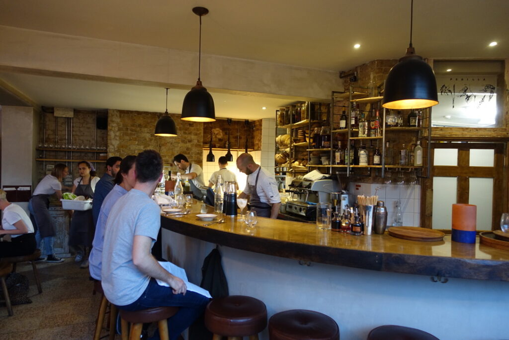 We can describe Perilla as a neighbourhood restaurant in Newington Green that is run by chef Ben Marks (ex-Noma and The Square) and front-of-house manager Matt Emmerson (Polpo). Before opening their permanent site in November 2016, they hosted a string of successful residencies. The former children’s café features a colour palette of multiple shades of brown, from umber-tinged to teabag-dyed walls – a rustic Scandic aesthetic full of charm. Being a corner building, it has a huge curved glass frontage that floods the space with natural light. I like it. Of course, we perch at the kitchen bar to get the best view of the dozen or so young chefs constructing dishes they’ve spent weeks developing. Oh, and you may have heard of Perilla through its TV appearances – Chef Ben Marks was on Great British Menu, senior sous chef Adam Wood on the Million Pound Menu with his concept Coracle and Mark S competed on Masterchef the Professionals.