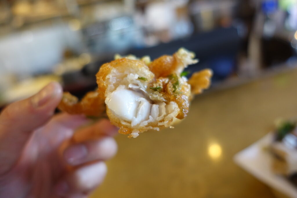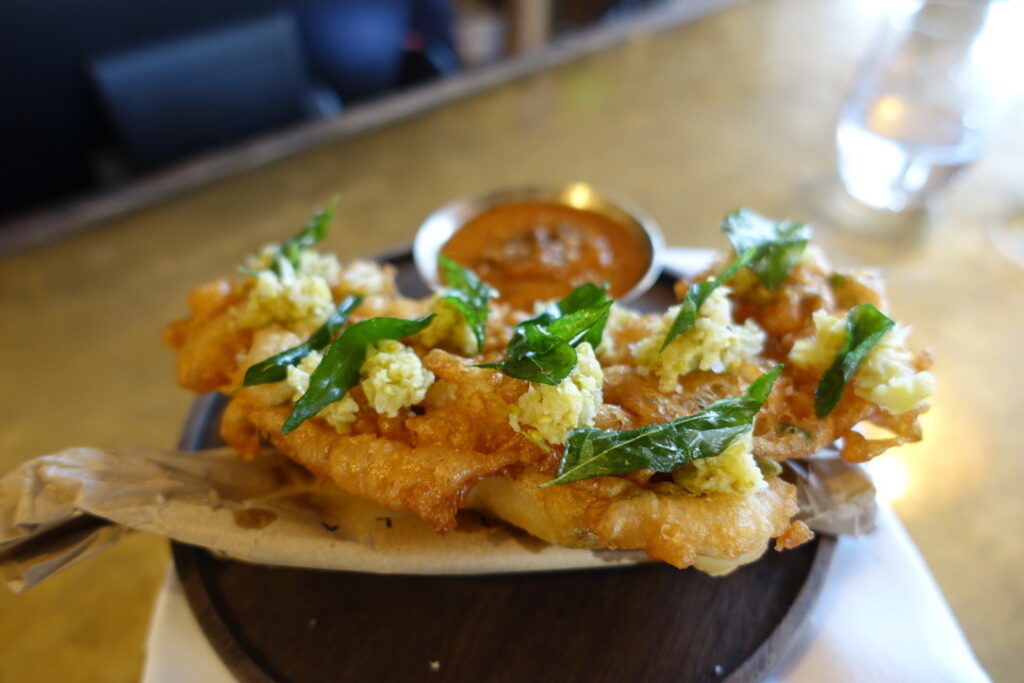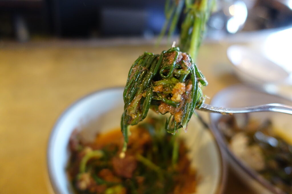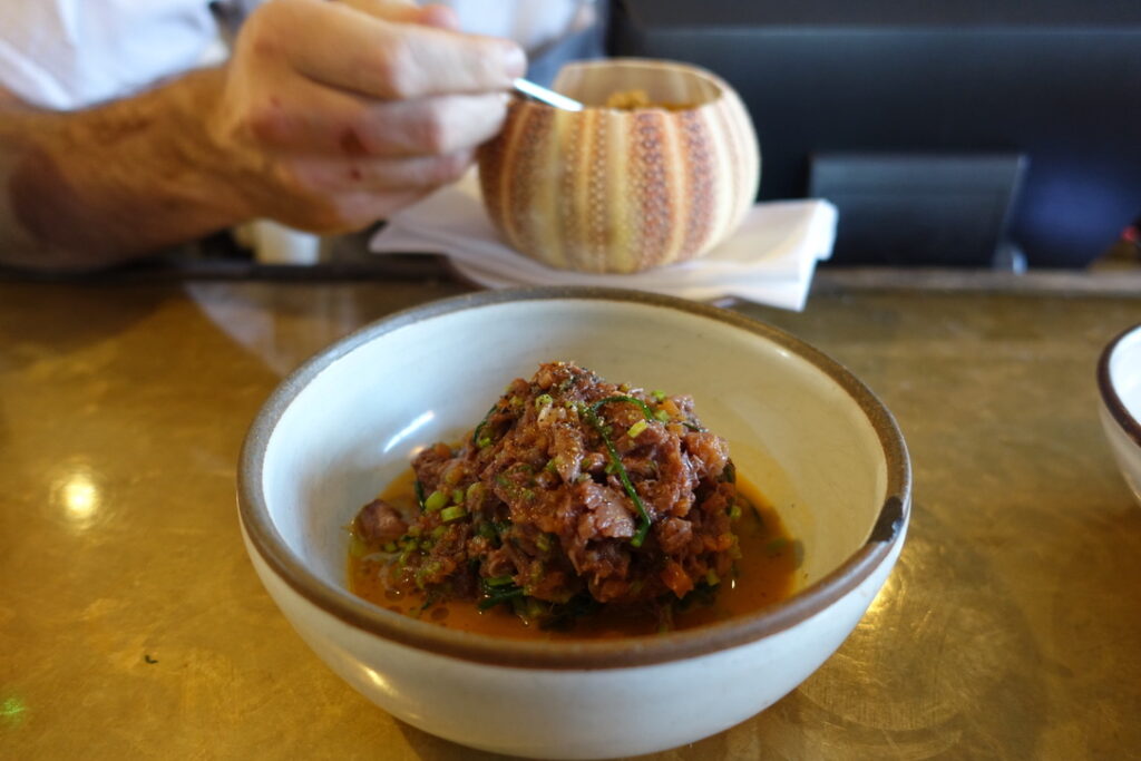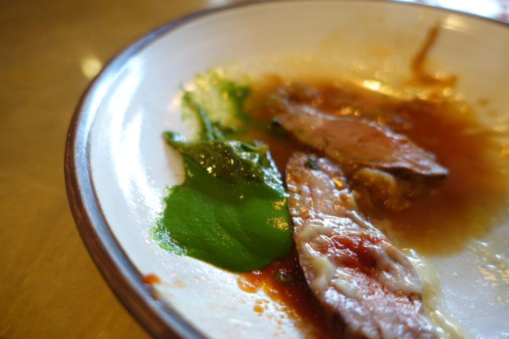 Next came the ragu of cod. Their version is made with tangles of monk’s beard greens instead of pasta, and a meaty, slow-cooked stew of red wine-braised cod head ragu. Crunch comes from toasted bottarga breadcrumbs.