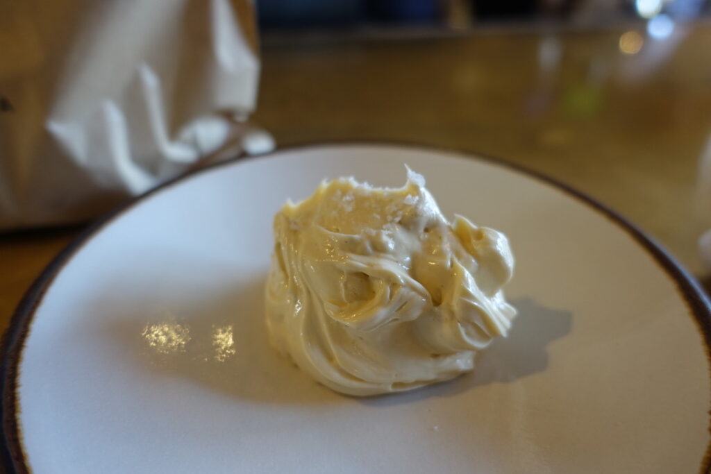 There is bread and then there is homemade seaweed sourdough with whipped brown butter £4. If you live and breathe good sourdough like I do, this is where you should play; it’s your thing. What arrives is an innocent brown paper bag stamped with the restaurant’s logo. Inside are quartered pieces of steaming hot bread with a crust full of crunch and snap. We found ourselves slathering the whipped butter – rich with caramel tones, into the gummy centre. This is the sweet science of bread-making done to a tee. We ordered two portions. I was genuinely sorry I couldn’t fit more in.