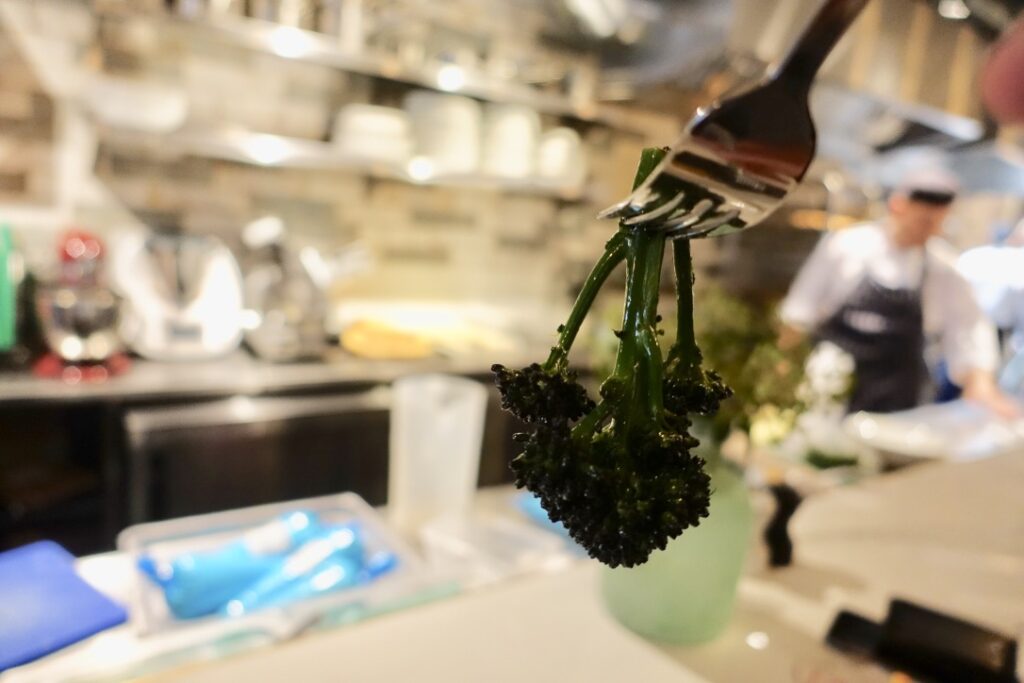 Purple spouting broccoli £5 with a ripe kick of chilli and pungent garlic was fantastic too.