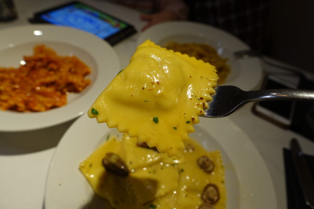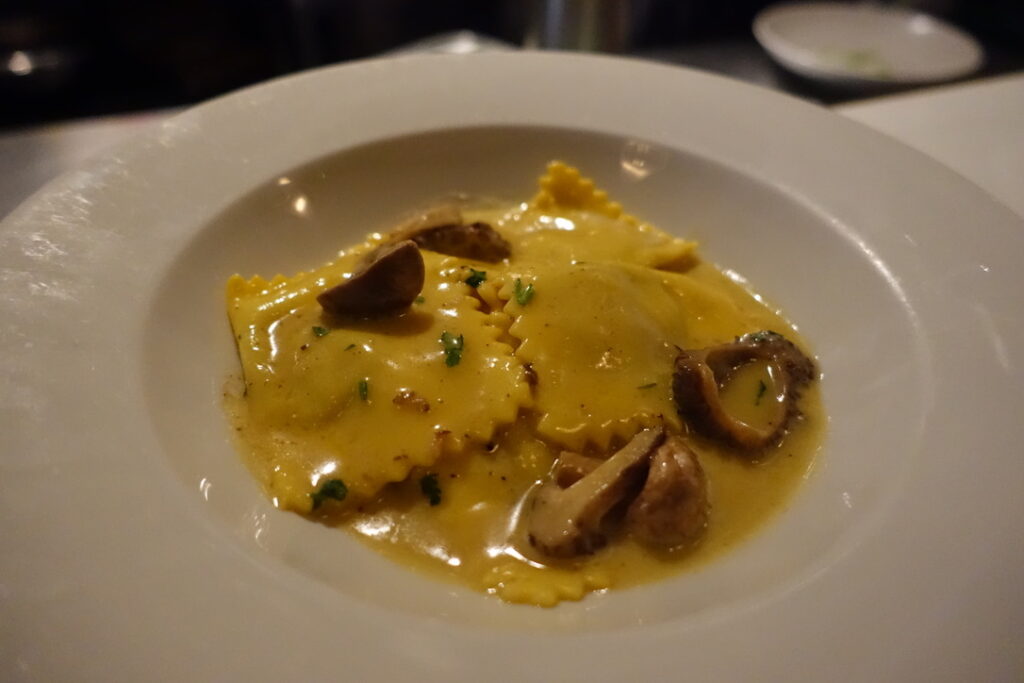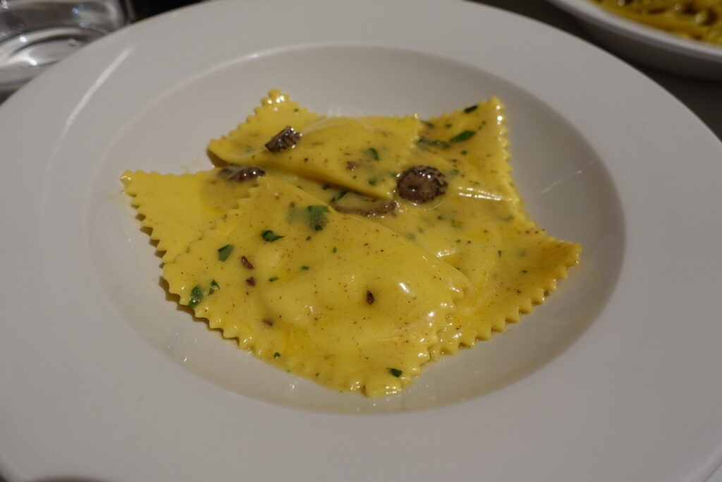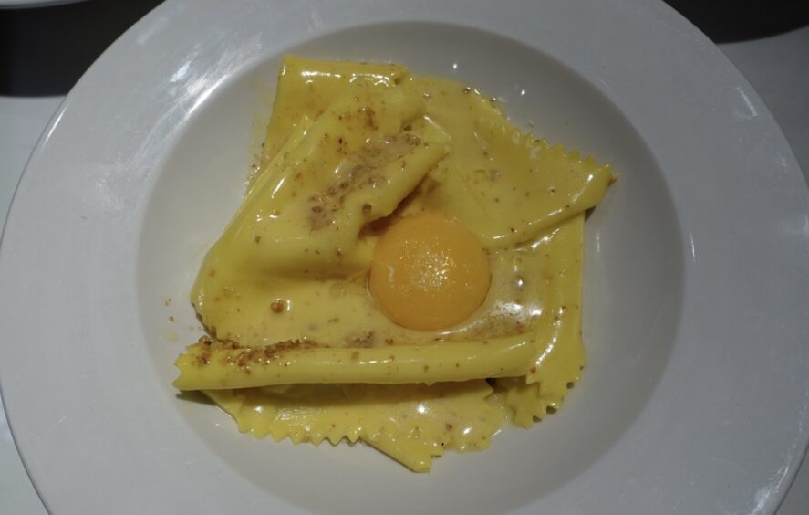 St. George mushroom, morel and ricotta ravioli £13.50 in its silky butter sauce.