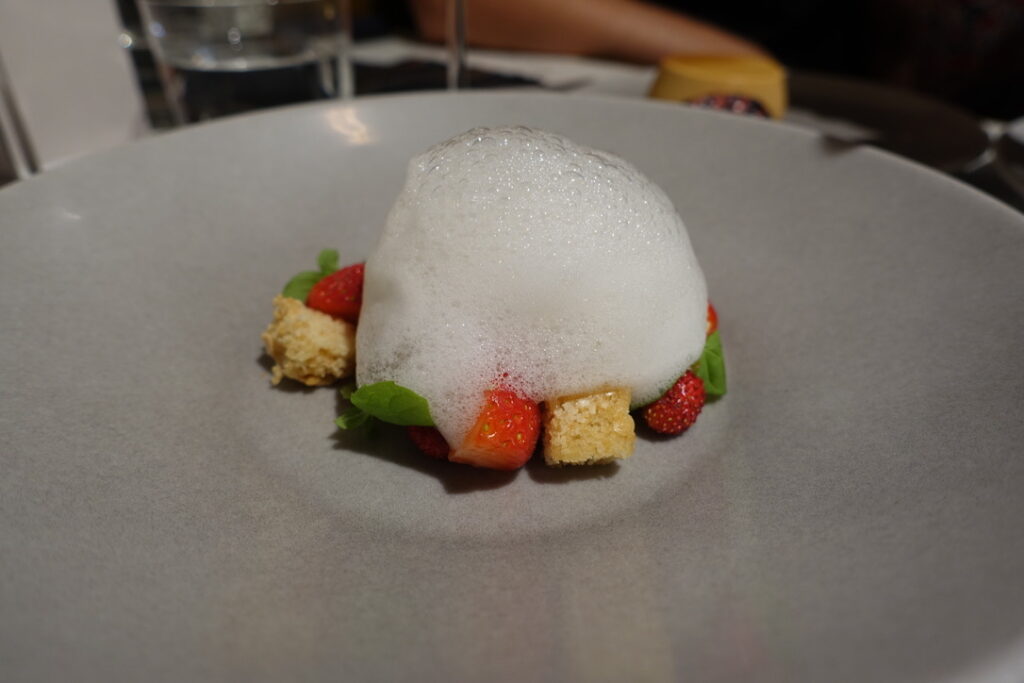 The wild strawberries came with a cloud yogurt foam, almond genoise cake, mint and Moscato £6 – this one felt very much like a palate cleanser than anything substantial.