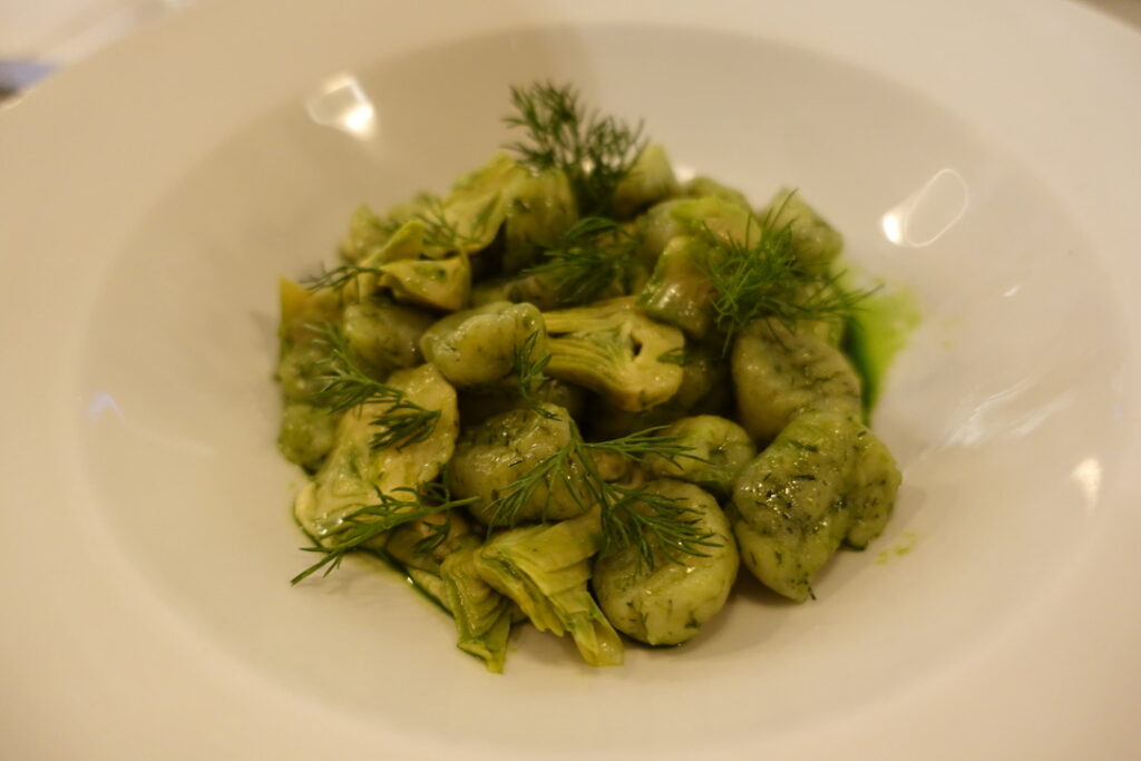 If you’re delicate like my sister, who’s allergic to eggs – there’s the dill gnocchi, drenched in moss green sauce loaded with puréed and marinated artichoke. The whole thing is soothing and medicinal, a bit of a wild card that might not always be on the menu. It’s definitely an acquired taste, but one that lingers long after.