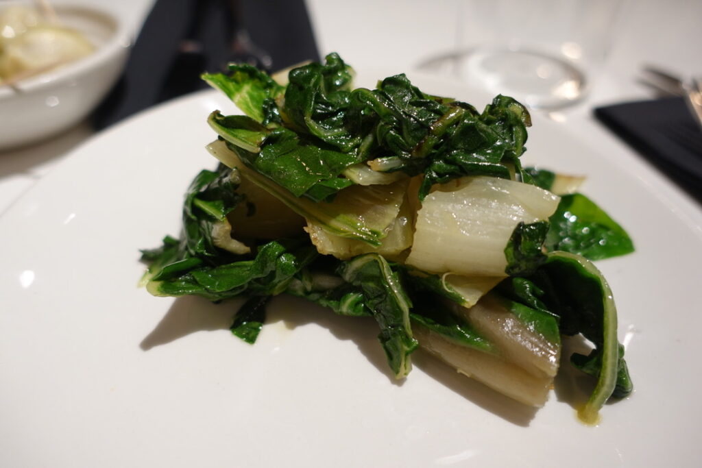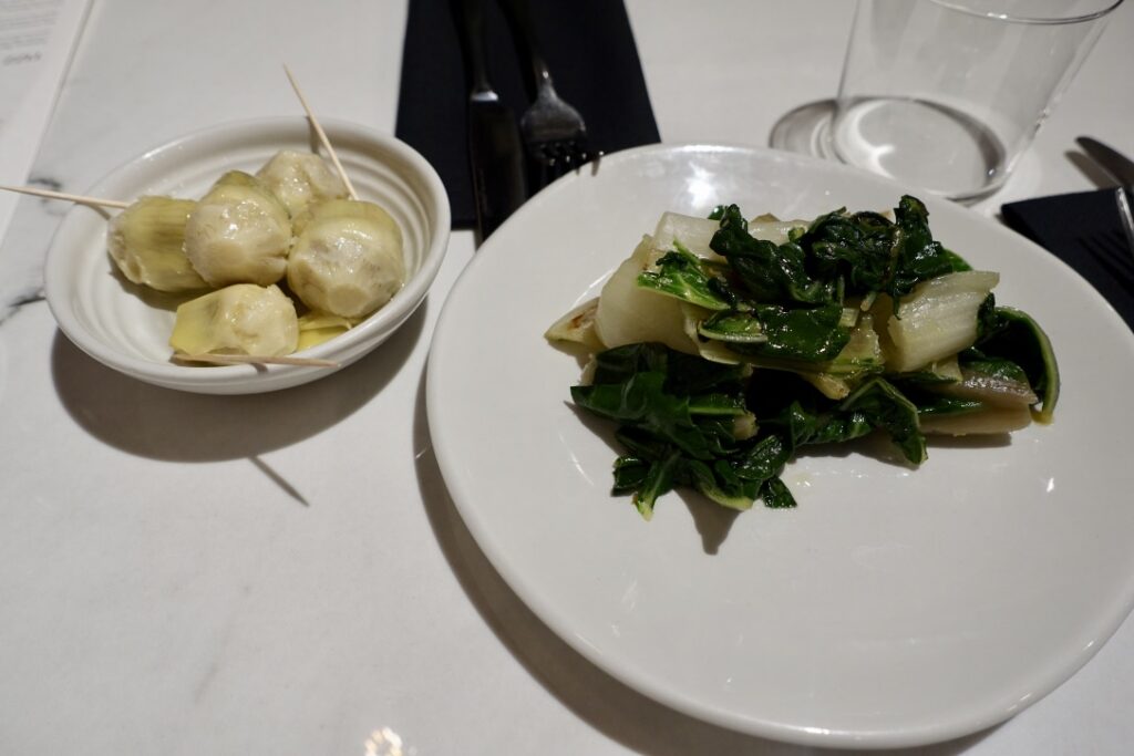 The stalwart antipasti selection of Swiss chard £5.50, nocelara olives £3 and artichoke hearts £3.