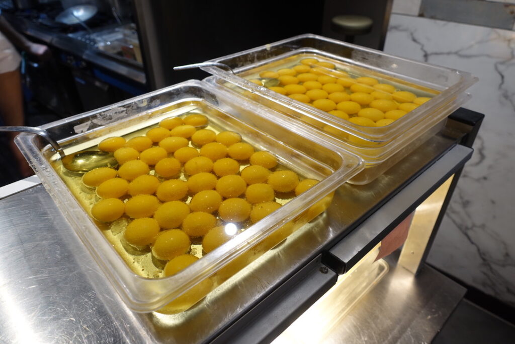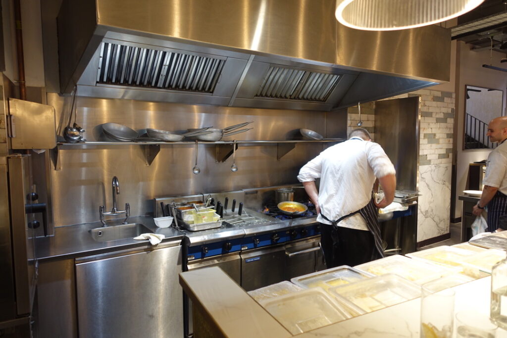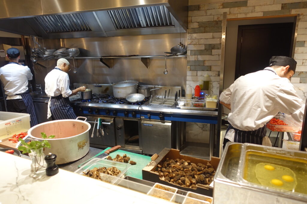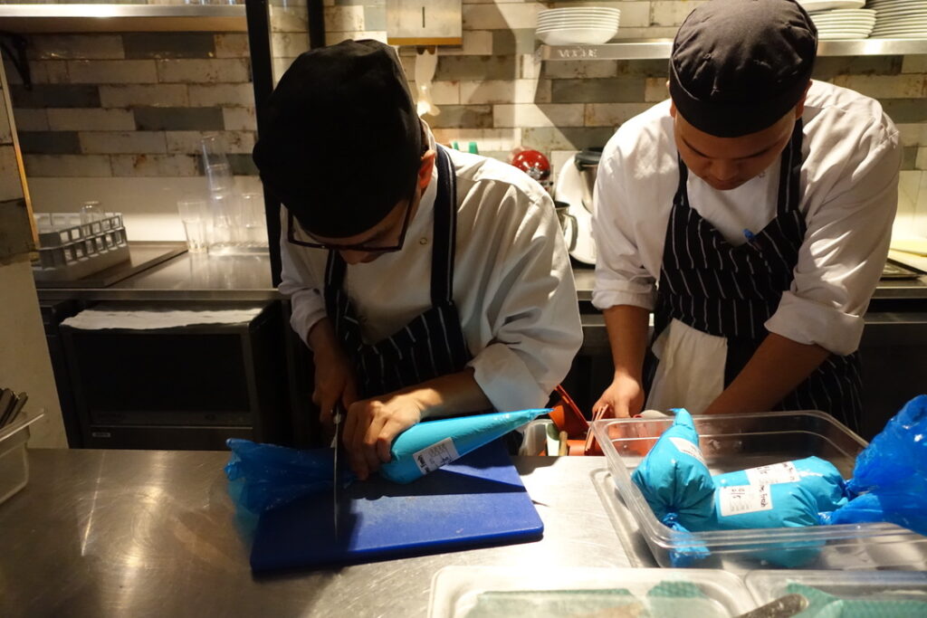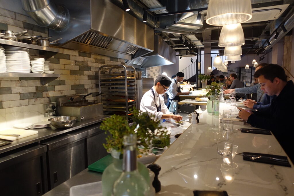It turns out there is a private room upstairs that seats 10, and to the right of the kitchen picture you’ll see the confit egg yolks nestling away until they’re ready to be delicately placed into the silk handkerchiefs that I’ve become quite a pervert for.