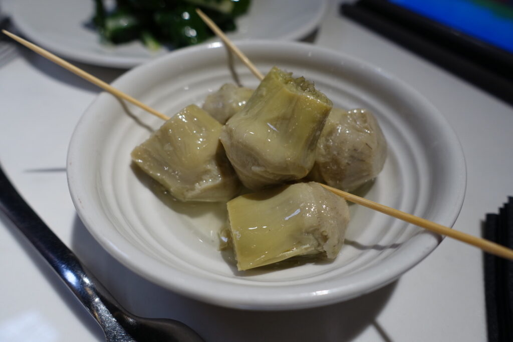 Marinated baby artichoke hearts £5 – have a back hit of quality olive oil and vinegar that delivers a sharp point of tongue puckerege. I’m not sure “puckerege” is a word, but I’ll run with it for now.