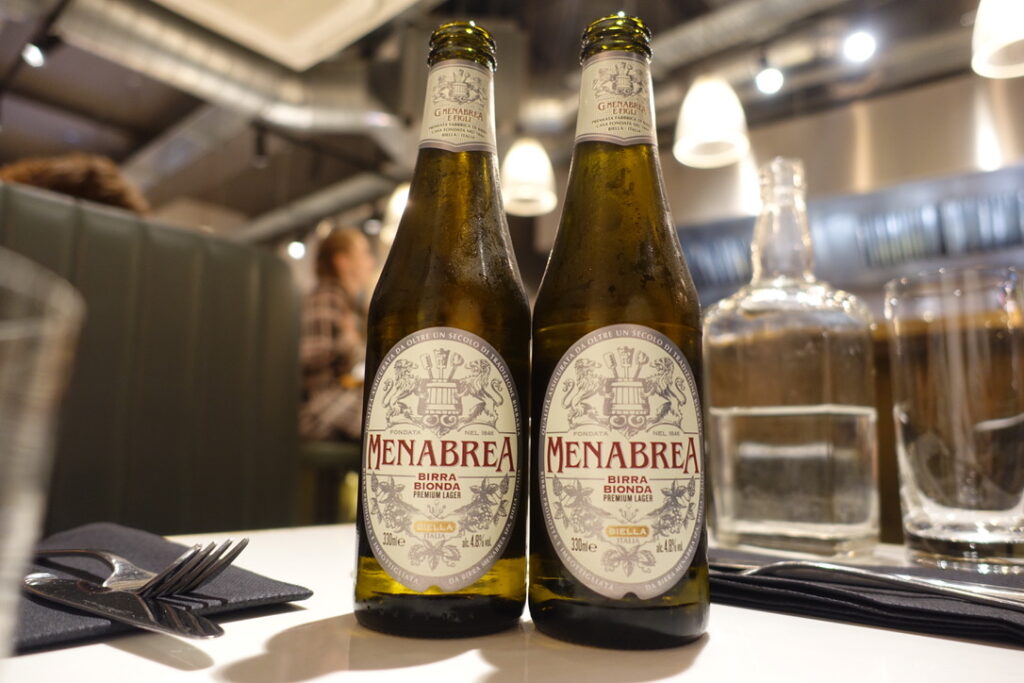 We sip on ice cold menabrea £5 and lubricate with vermentino £32 whilst we wait for our waist thickening, life sustaining carb orgy.