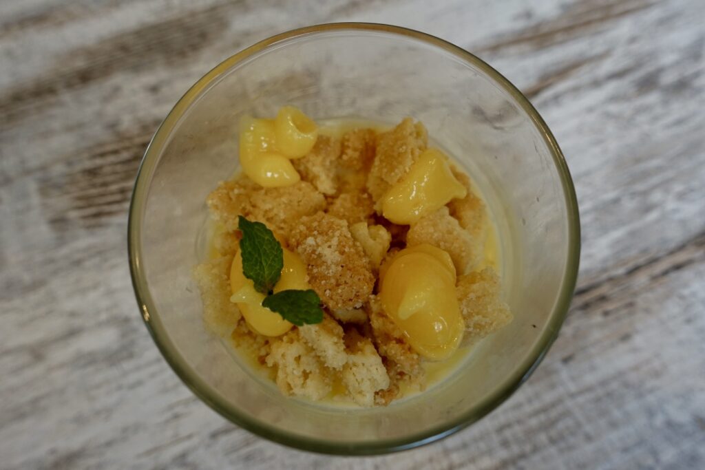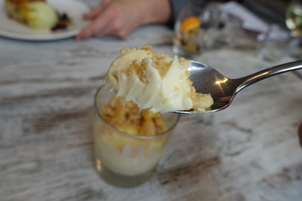 From there, we ordered the bright, sharp, mouth-puckering lemon posset £7 with a buttery shortbread crumb. It was impossible to pace myself with this mouth-gushing pudding – an attention-grabbing high point of the meal.