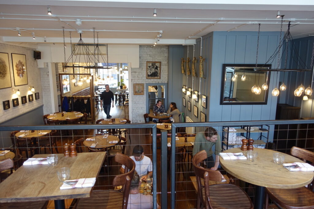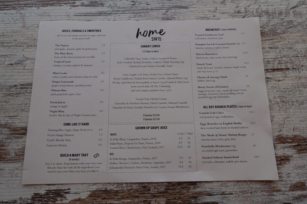 Home SW15 is the lovechild of three chaps – Craig and “the two Freddies” – who met while working at the now-defunct Charlotte’s Bistro in Chiswick, where they won accolades such as Chiswick’s Best Loved Local 2015 in Time Out and Waitrose Readers’ Restaurant of the Year 2015 for London. They left in the summer of 2017 to bring us Home SW15; a neighbourhood gem that aims to nourish you with majestic food that carousels with the seasons, inebriate you with fanciful cocktails, and then bring you back to sobriety with sweet-smelling coffee. I like this charge they’re leading. Inside the two-floored venue, there’s a distinct brasserie feel, a colour palette of white-painted distressed bricks and duck-egg blue wood panels, with chestnut banquettes and matching tables and chairs. We sat on the second floor, where a long dining table dominates, as does the glass-panelled roof. It feels like a chipper place to be.