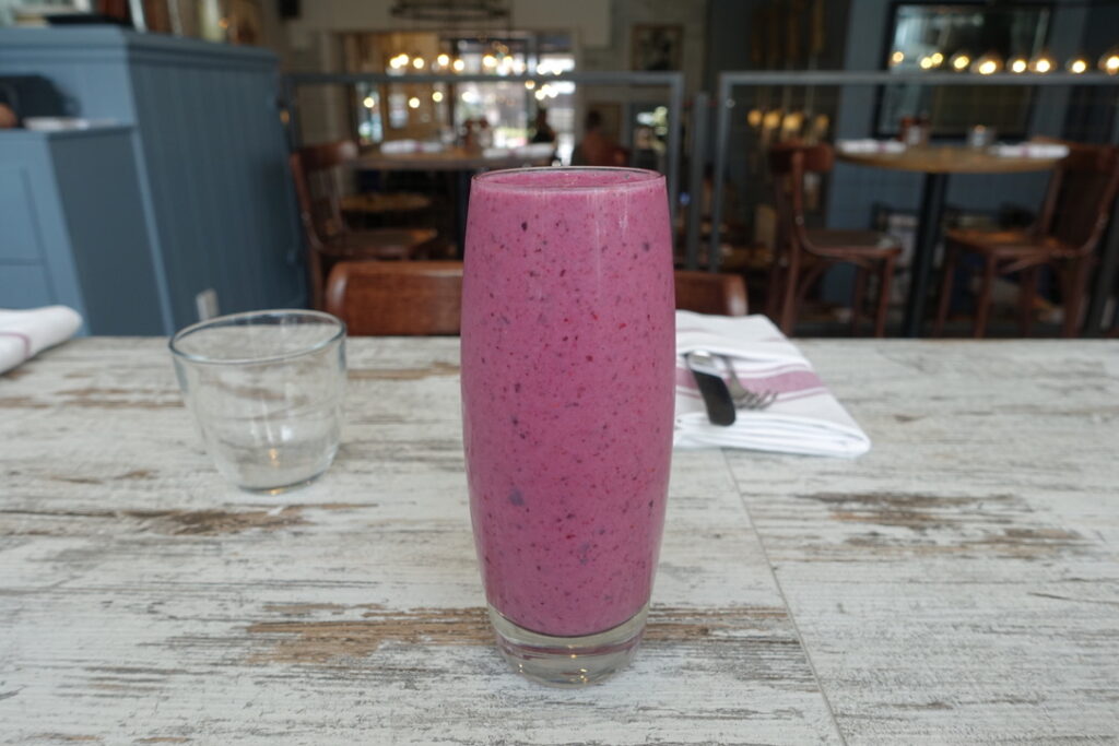 Seeing that it was only 9:45 a.m., the Mary Berry £5.50 was in order – a thickly spun forest berry, banana, and oat milk belly-liner for the debauchery ahead.