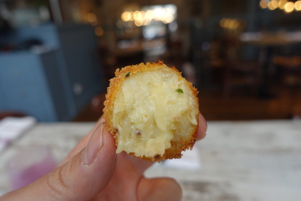 What came first, on the house whilst we waited for the brigade to arrive, were the cauliflower cheese croquettes. Cauliflower cheese can taste like gym socks from 1998, in my experience; however, these panko-armoured versions are stuffed with oozing cheddar and Gruyère that’ll make you swoon – one of the many compelling reasons to come back here. These were very, very good.
