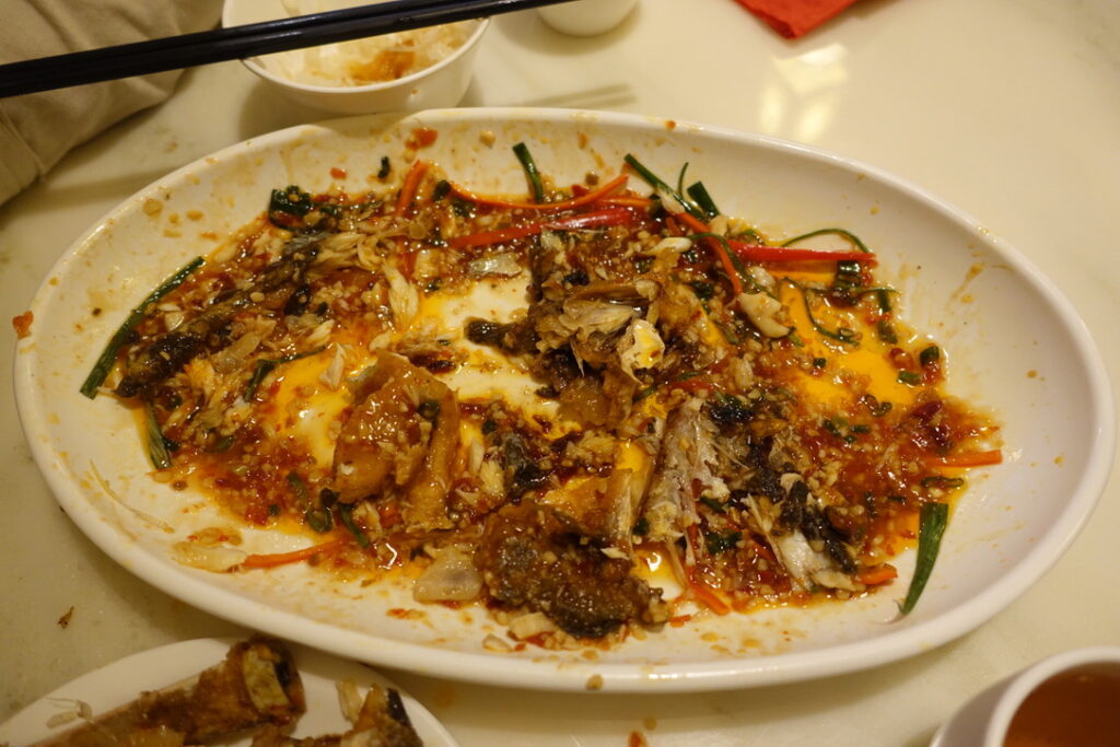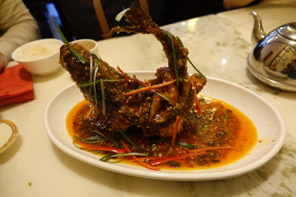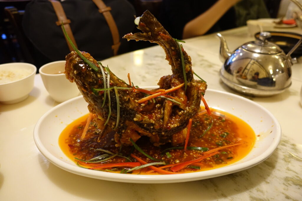 The real star of the night was the unbashful “fish-fragrant” whole seabass, fried until it curls in on itself, then smeared with fragrant hot oil laced with the sultry funk of fermented beans and vampire-slaying amounts of garlic. Eating the crispy exterior bones is a genuine perk – the whole thing was demolished, even the claggy bits of flavour-pelted flour. Next time, I’d come here just for this dish, though I’ll spend the rest of my sterling in My Old Place.